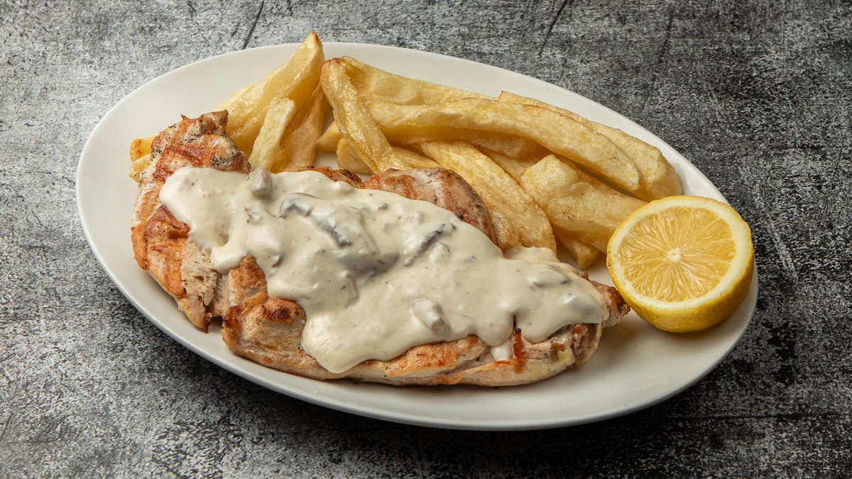 Ζουμερό κοτόπουλο φούρνου γεμισμένο με εκλεκτό τυρί και φρέσκα μυρωδικά, ψημένο αργά μέχρι να αποκτήσει χρυσαφένια πέτσα και πλούσια γεύση. Σερβίρεται με ριζότο από σταφίδες, καρύδια και κρέμα ανθόγαλου.