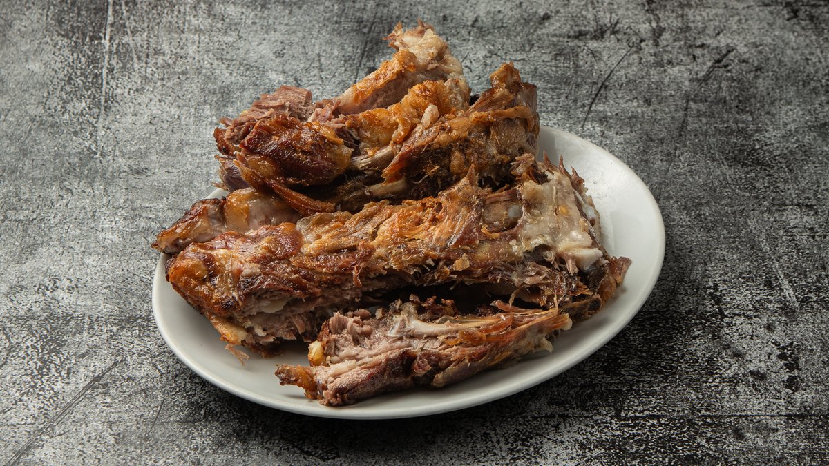 Κατσικάκι ψημένο αργά στο φούρνο με τραγανή κρούστα θυμαριού και διακριτικό άρωμα πετιμεζιού που χαρίζει γλυκιά ισορροπία και γιορτινό χαρακτήρα. Σερβίρεται με πουρέ οφτής πατάτας και εξαιρετικά παρθένο ελαιόλαδο.