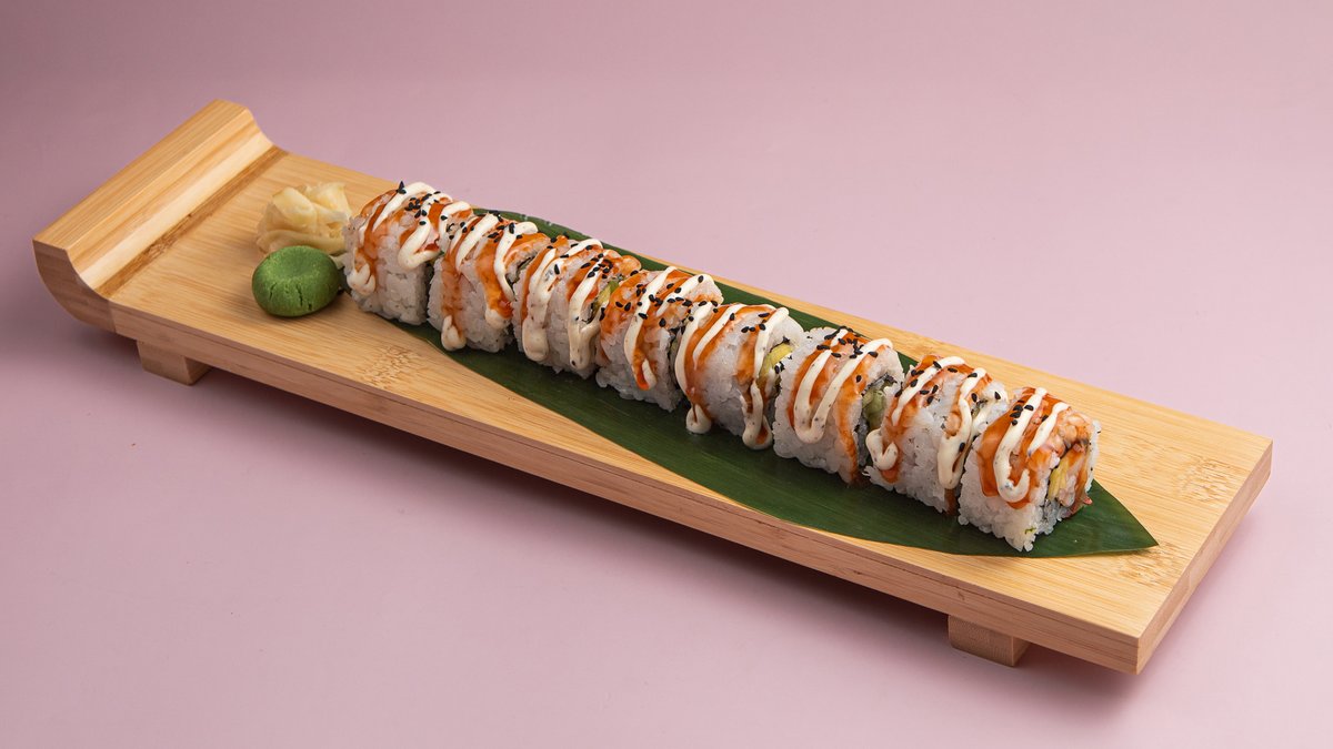 8 Τεμάχια. Γαρίδα tempura, αβοκάντο, αγγούρι, teriyaki sauce, sweet chili sauce, σουσάμι μιξ