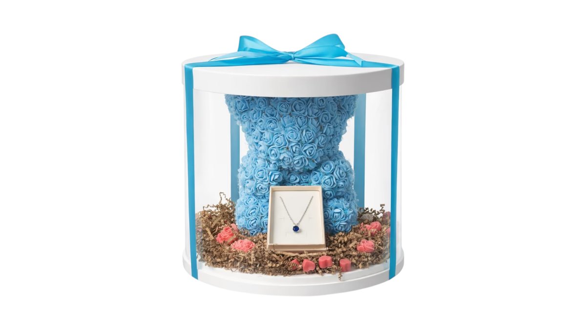🧸 Rose Teddy Gift Box – Blue Edition