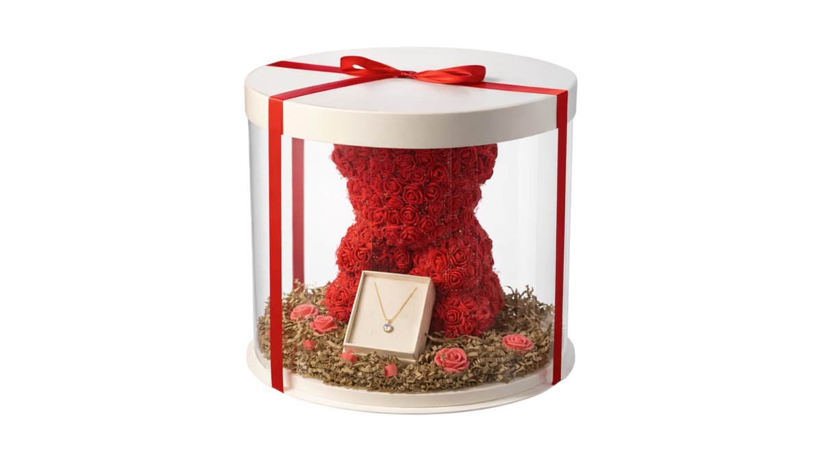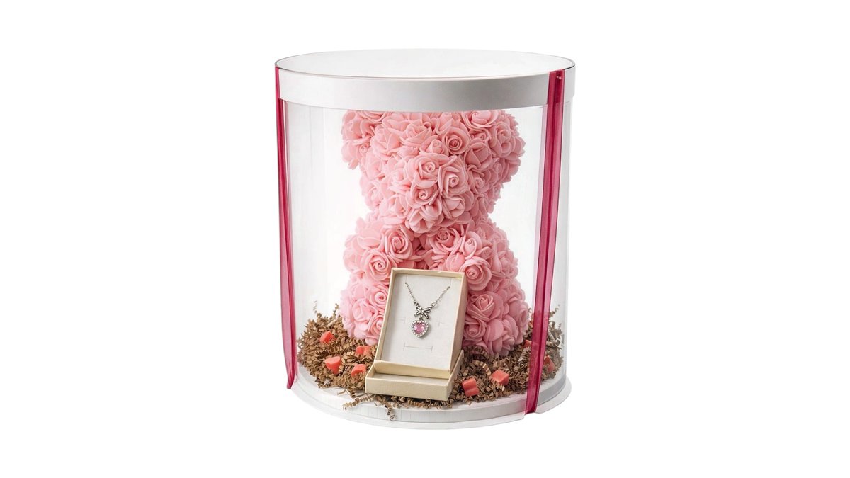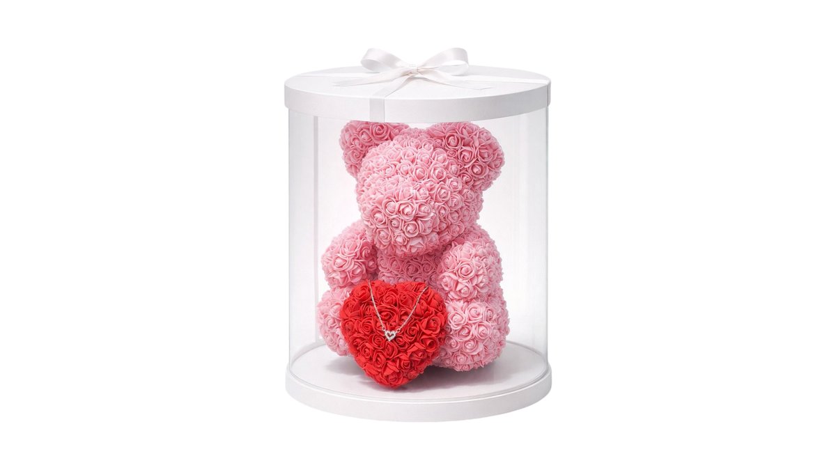 🧸 Elegant Rose Bear with Necklace – Πολυτελές Δώρο Αγάπης