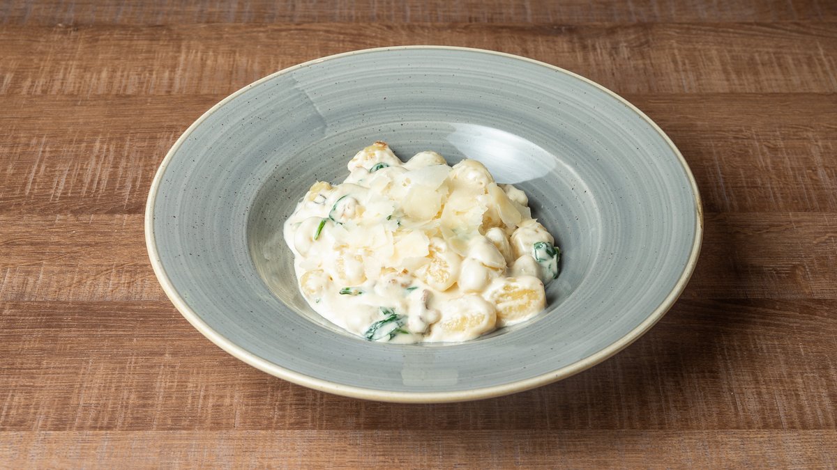 Νιόκι με κρέμα γάλατος, baby σπανάκι και ψίχα καρυδιού