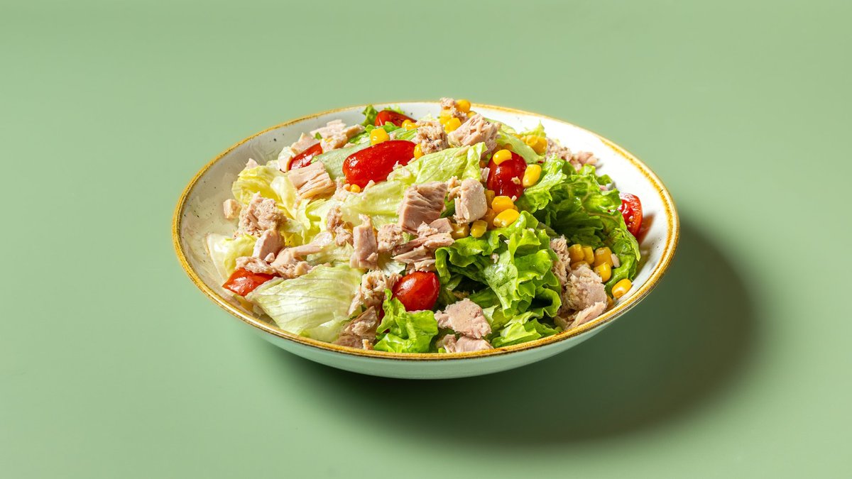 Μαρούλι, άισμπερκ, τόνος, καλαμπόκι, ντοματίνια