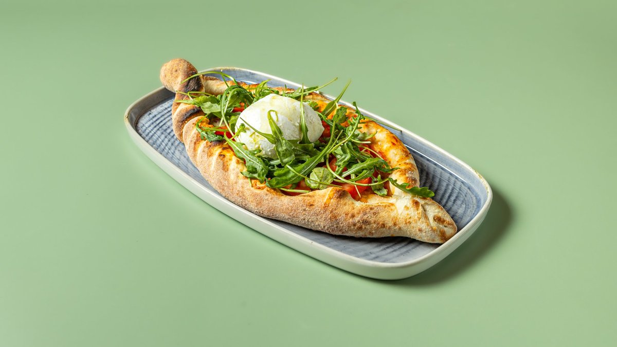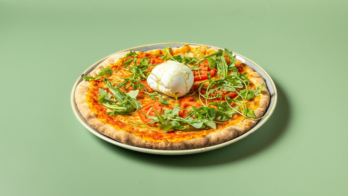 Με σάλτσα ντομάτας, μοτσαρέλα, ντομάτa, ρόκα και Buratta