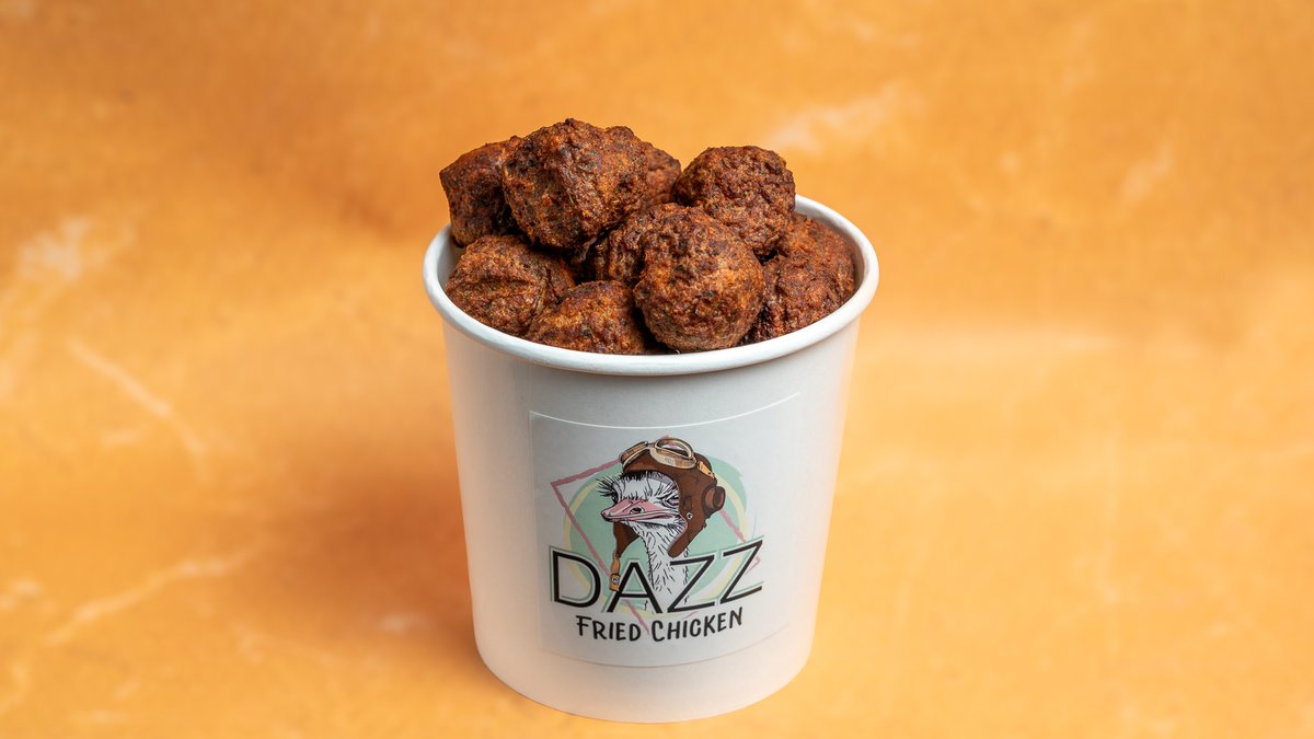 29cm. Με σάλτσα, gouda, παναρισμένο φιλέτο κοτόπουλο, μπέικον, onion rings και bbq.