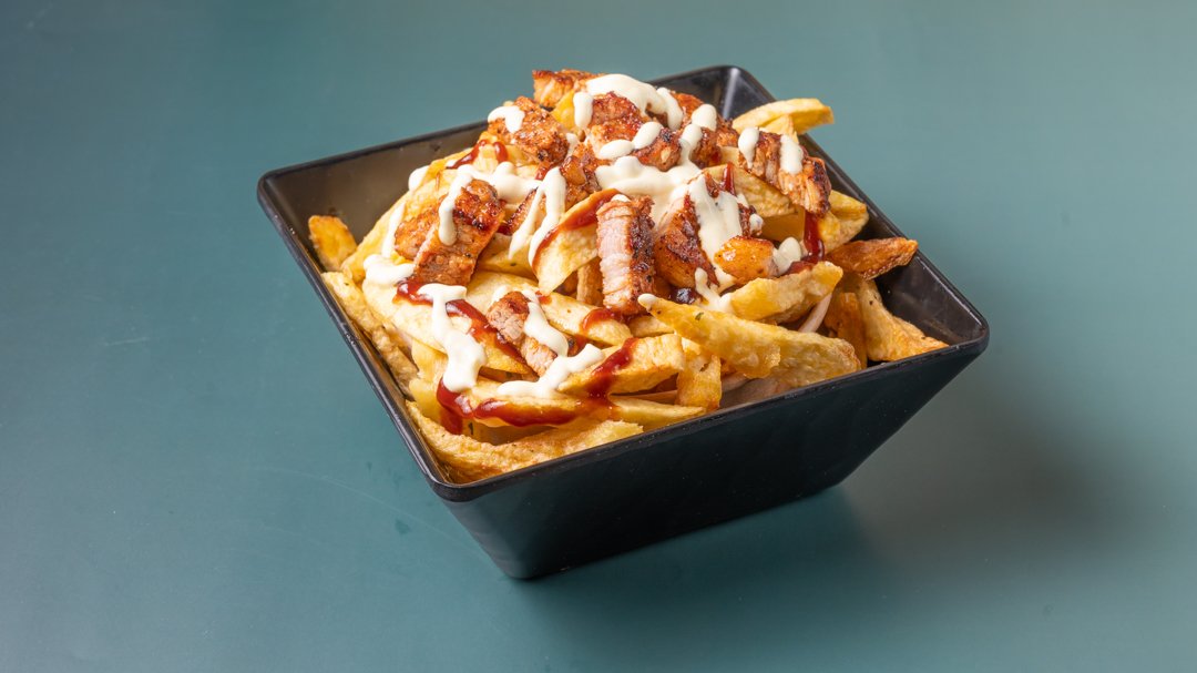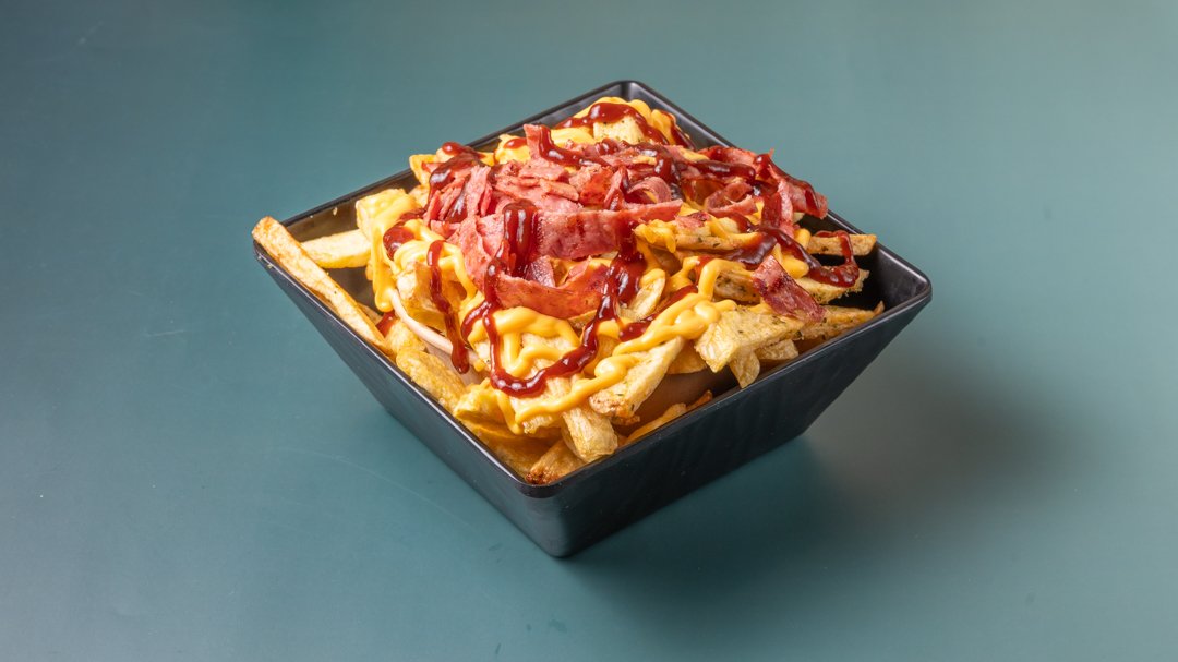 Πατάτες Τηγανητές Με Bacon, Cheddar Sauce και Bbq Sauce