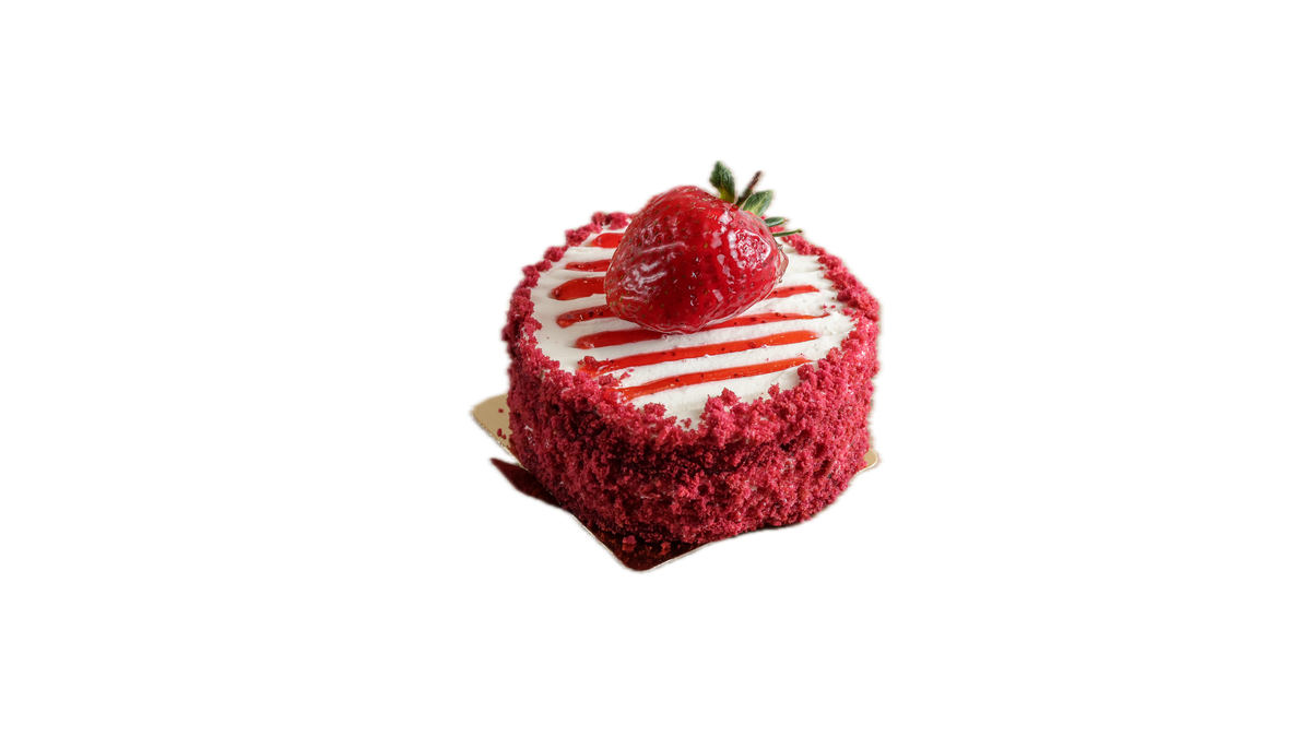 Σε βάση red velvet cake κρέμα λευκής σοκολάτας, χειροποίητη μαρμελάδα φράουλας και πέρλες σοκολάτας