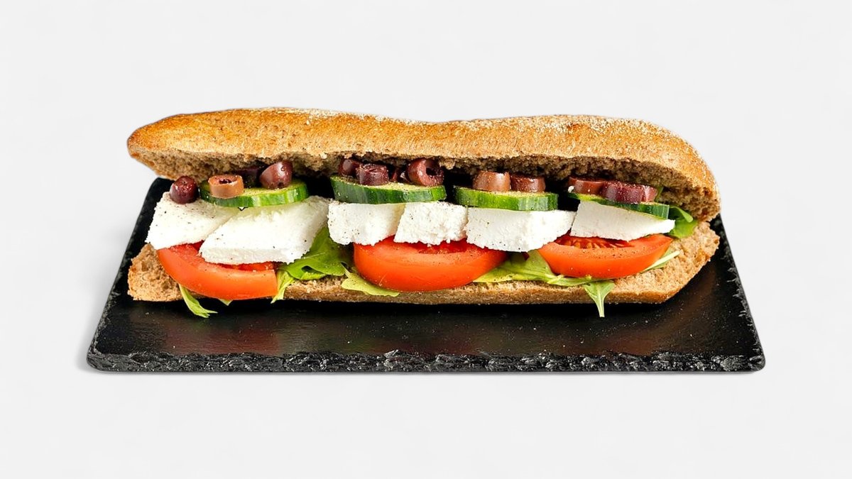 Με φέτα, πάστα ελιάς, ή ροδέλα ελιάς, αγγούρι και ντομάτα