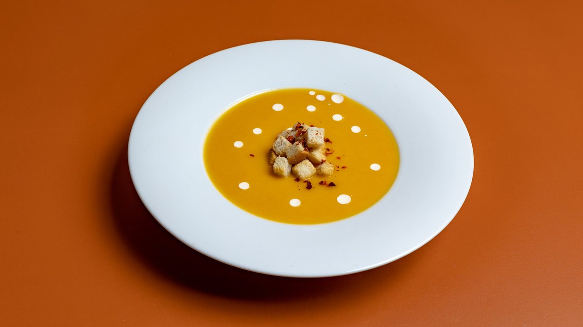 Σούπα Βελουτέ Κολοκύθα, Παστό Χοιρινό, Sour Cream και Πίκλα Βερύκοκο