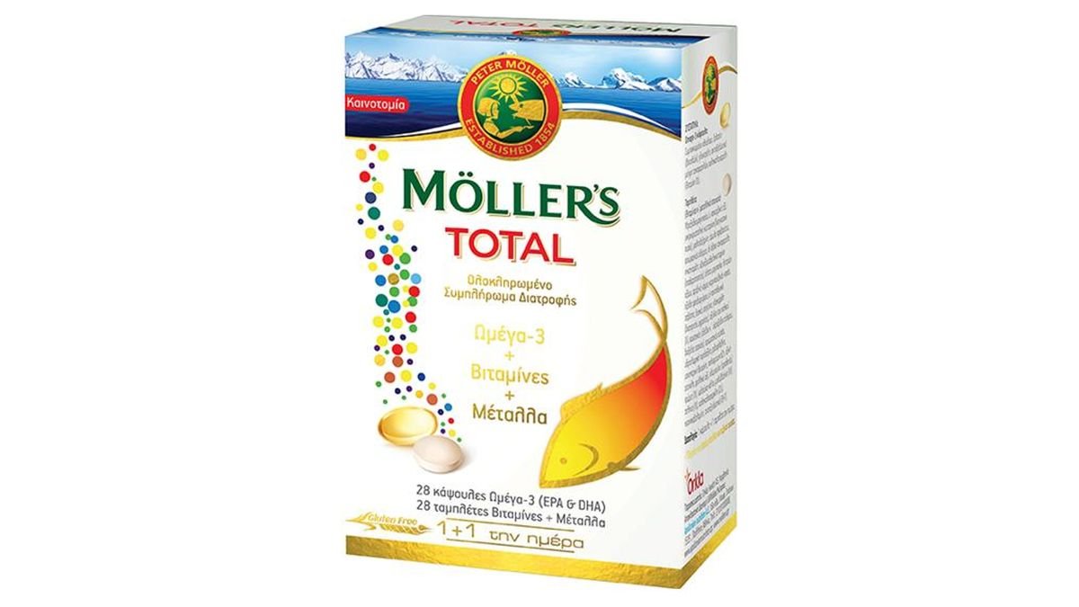 Moller'S Total Συμπλήρωμα Διατροφής Ωμέγα 3, Βιταμινών & Μετάλλων για Ολοκληρωμένη Ενίσχυση του Οργανισμού, (28 Caps + 28 Tabs)