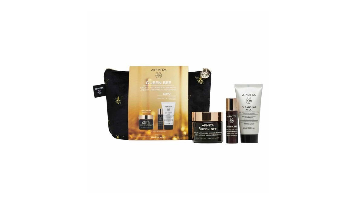 Apivita Queen Bee Promo Pack με Queen Bee Κρέμα Ημέρας Απόλυτης Αντιγήρανσης Ελαφριάς Υφής 50 ml & Δωρο Γαλάκτωμα Καθαρισμού 3σε1 για Πρόσωπο Μάτια 50 ml & Queen Bee Ορός Απόλυτης Αντιγήρανσης 10 ml