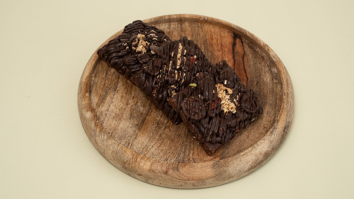 No sugar. Περιέχει: φυστικοβούτυρο, μέλι, βρώμη, φυστίκι, κράνμπερι, σοκολάτα μαύρη, χουρμάς, φλέικς σοκολάτας γάλακτος και σοκολάτα καραμέλα