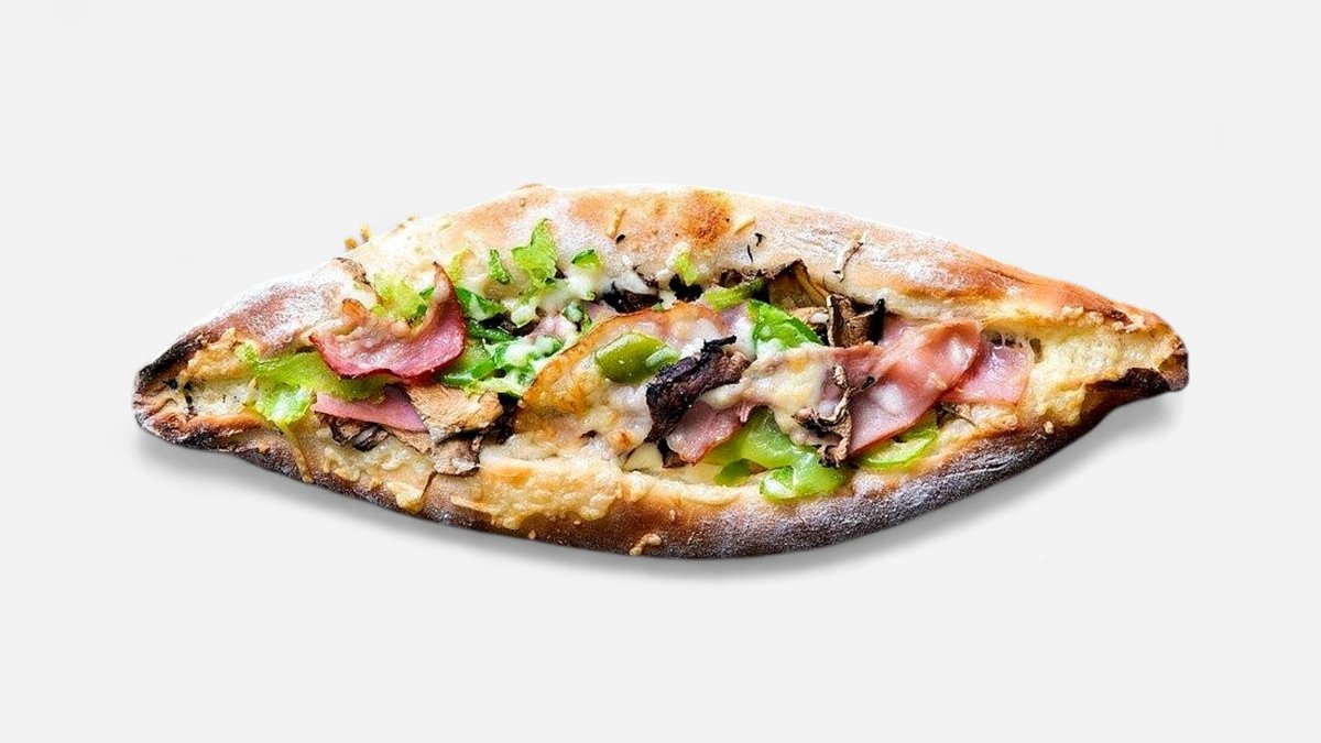 Με σάλτσα ντομάτας, gouda, ζαμπόν, μπέικον και πιπεριά πράσινη