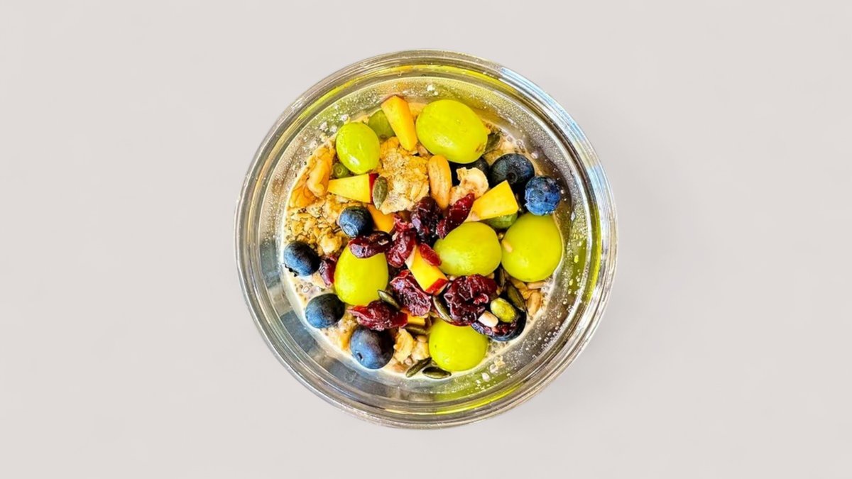 Chia, φρουτάκια εποχής, ξηροί καρποί, κομματάκια σοκολάτας και granola