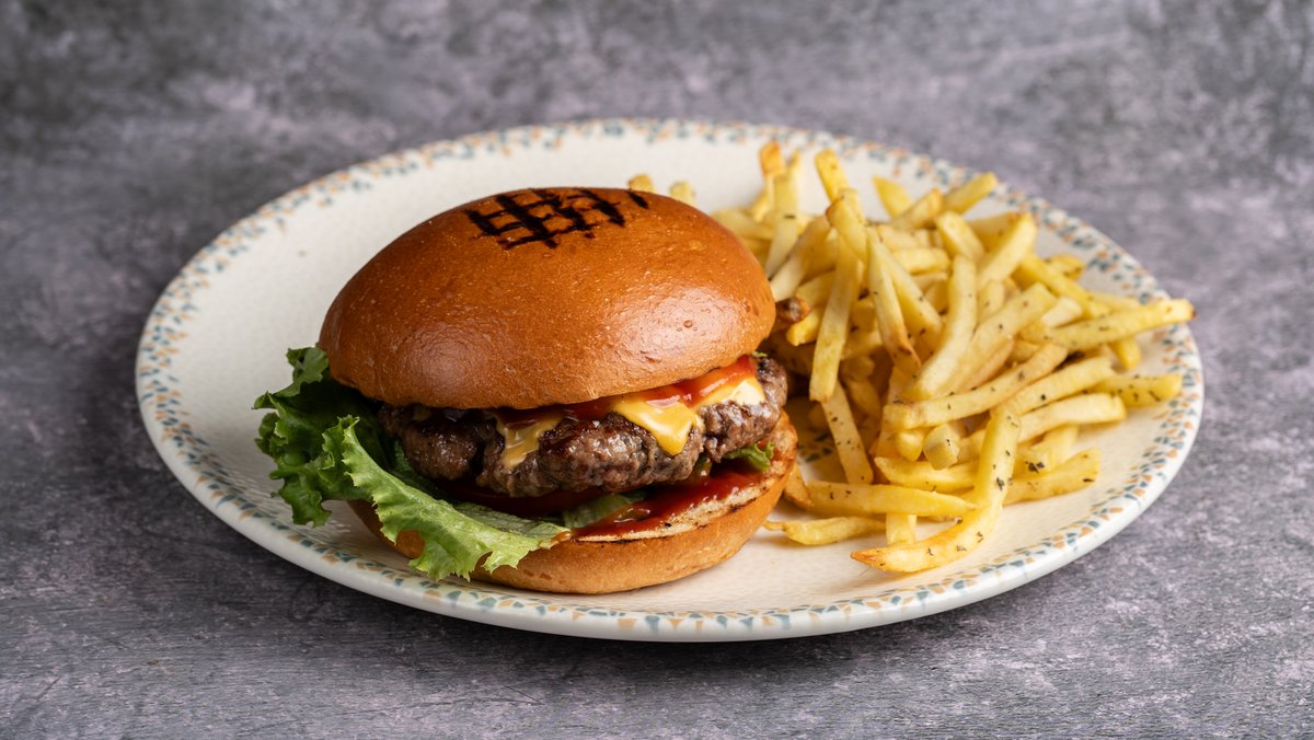 Με μπιφτέκι από 100% μοσχαρίσιο κιμά, cheddar, ντομάτα, μαρούλι και ketchup. Συνοδεύεται από πατάτες τηγανητές