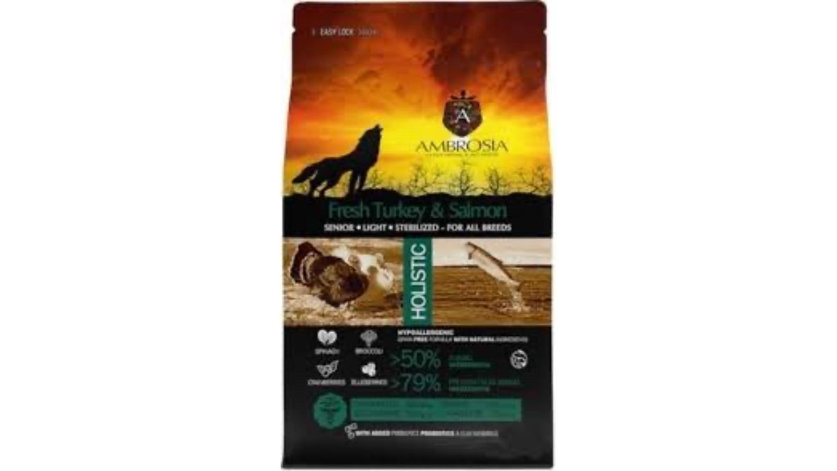 Ambrosia Grain-Free Dog Senior - Light - Sterilized Fresh Turkey & Salmon 2 kg