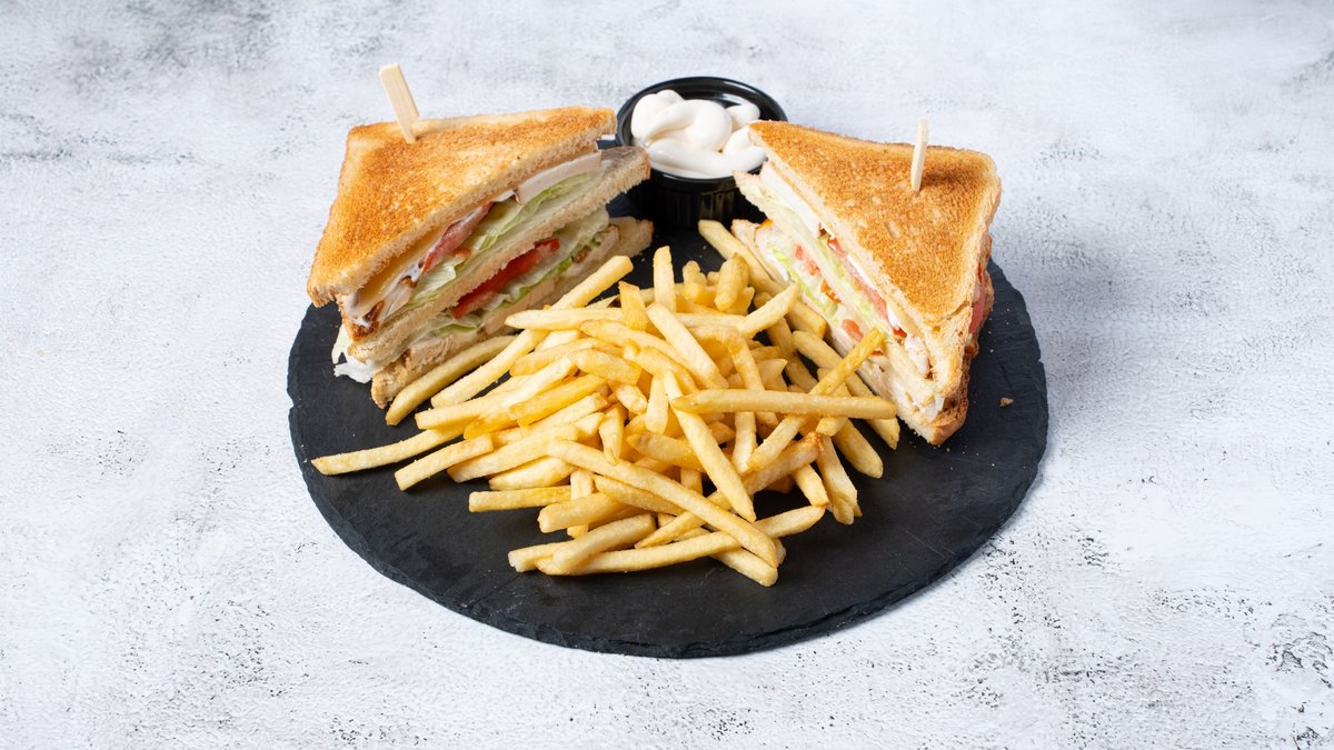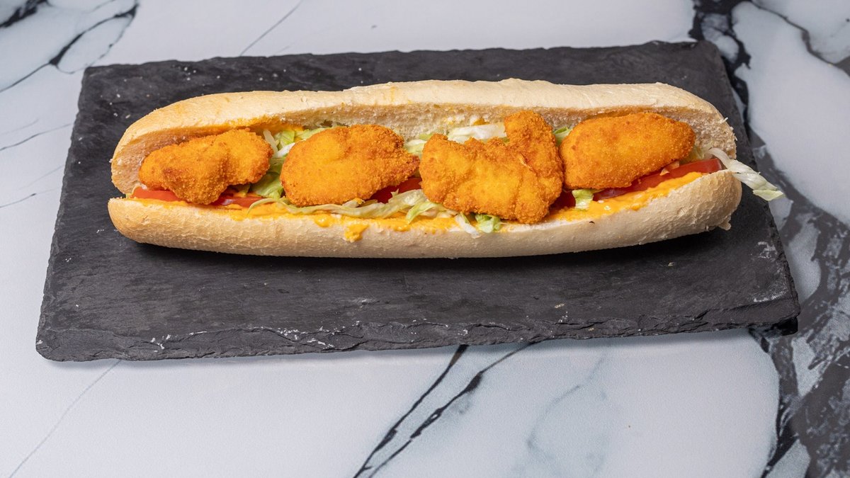 Ψωμάκι μπριός με παναρισμένο φιλέτο κοτόπουλου 120gr, ντομάτα, τυρί light, μαρούλι και ελαφριά ροζ σως. / Προαιρετικά σερβίρεται με τηγανητές πατάτες.