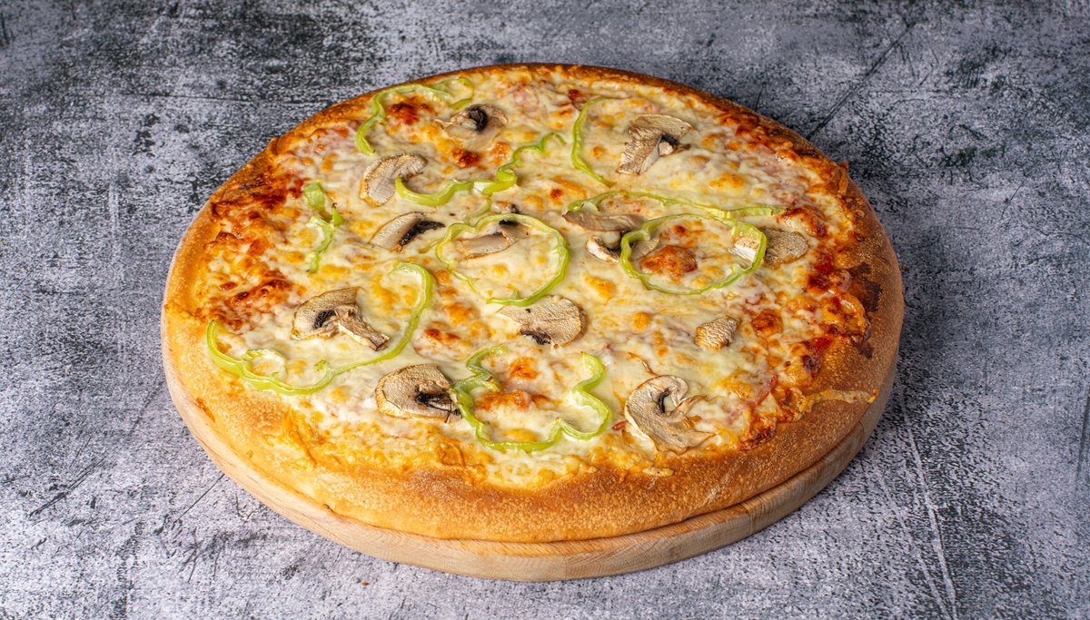 Με μανιτάρια, πιπεριά, ζαμπόν, μπέικον, λουκάνικο, σάλτσα ντομάτας και τυρί