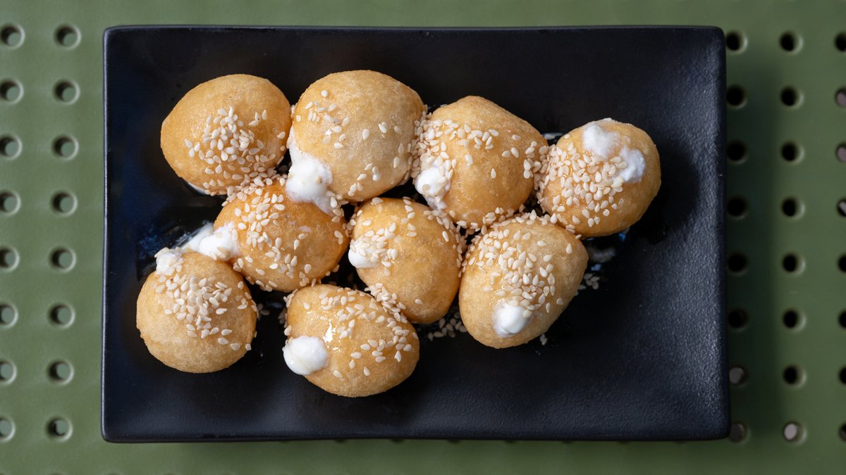 Λουκουμάδες Γεμιστοί με Μυζήθρα, Μέλι και Σουσάμι