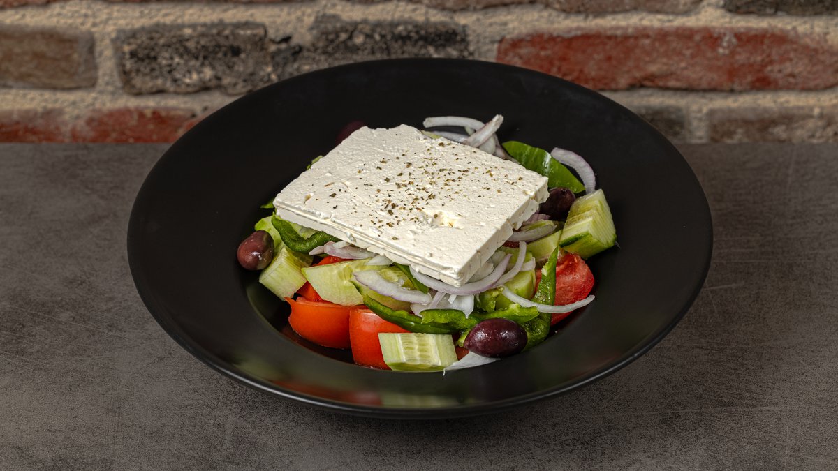 Σαλάτα με ντομάτα, αγγούρι, ελιές, φέτα και πιπεριές