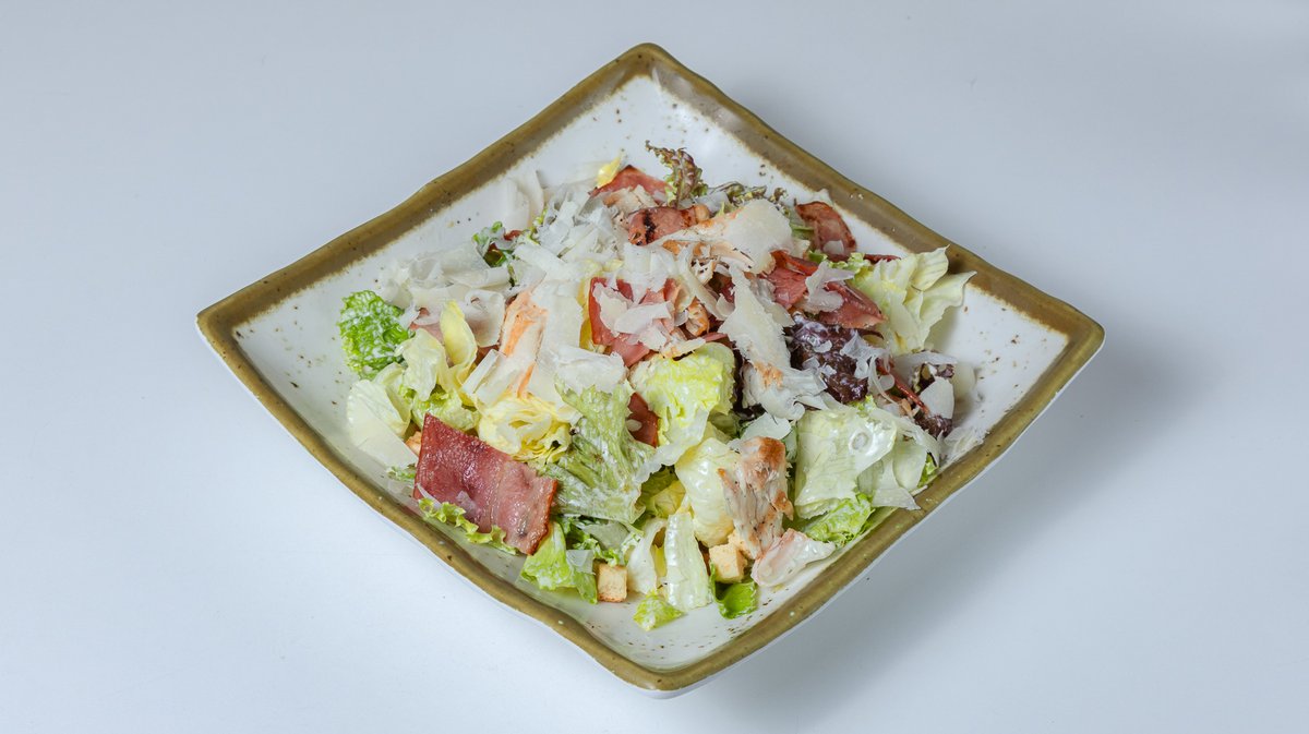 Σαλάτα με φιλέτο κοτόπουλο, λόλα, iceberg, μπέικον, κρουτόν, παρμεζάνα και σως Caesar`s