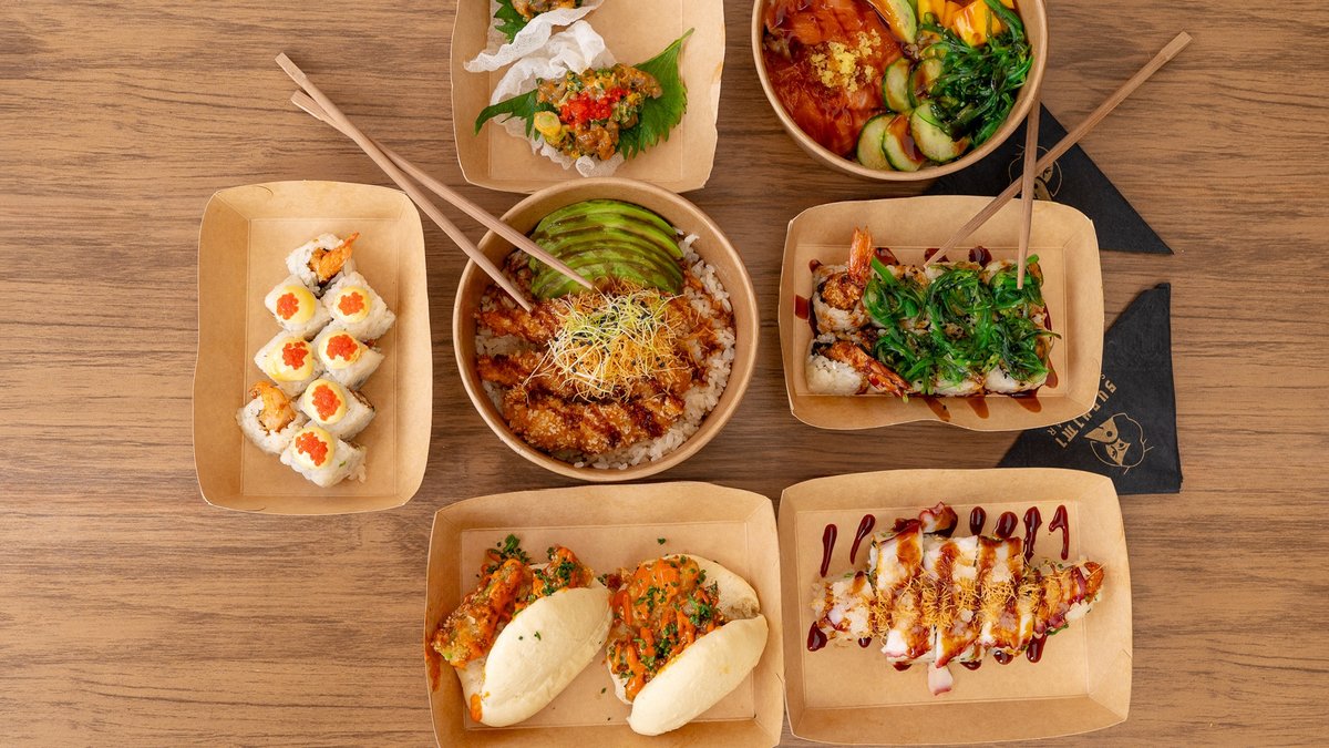 Σολομός αβοκάντο, mango, edamame, αγγούρι, tobiko, wakame, spicy mayo και teriyaki glaze