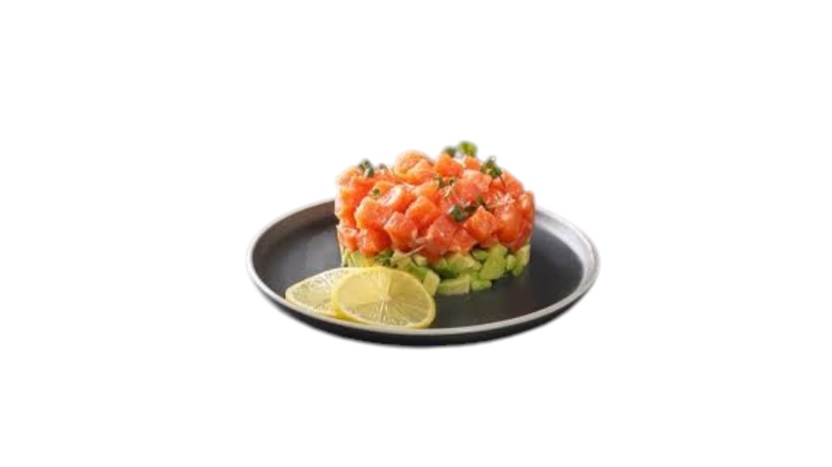 Salmon tartare, γαρίδες , αβοκάντο , wakame , teriyaki sauce & tobikko.
