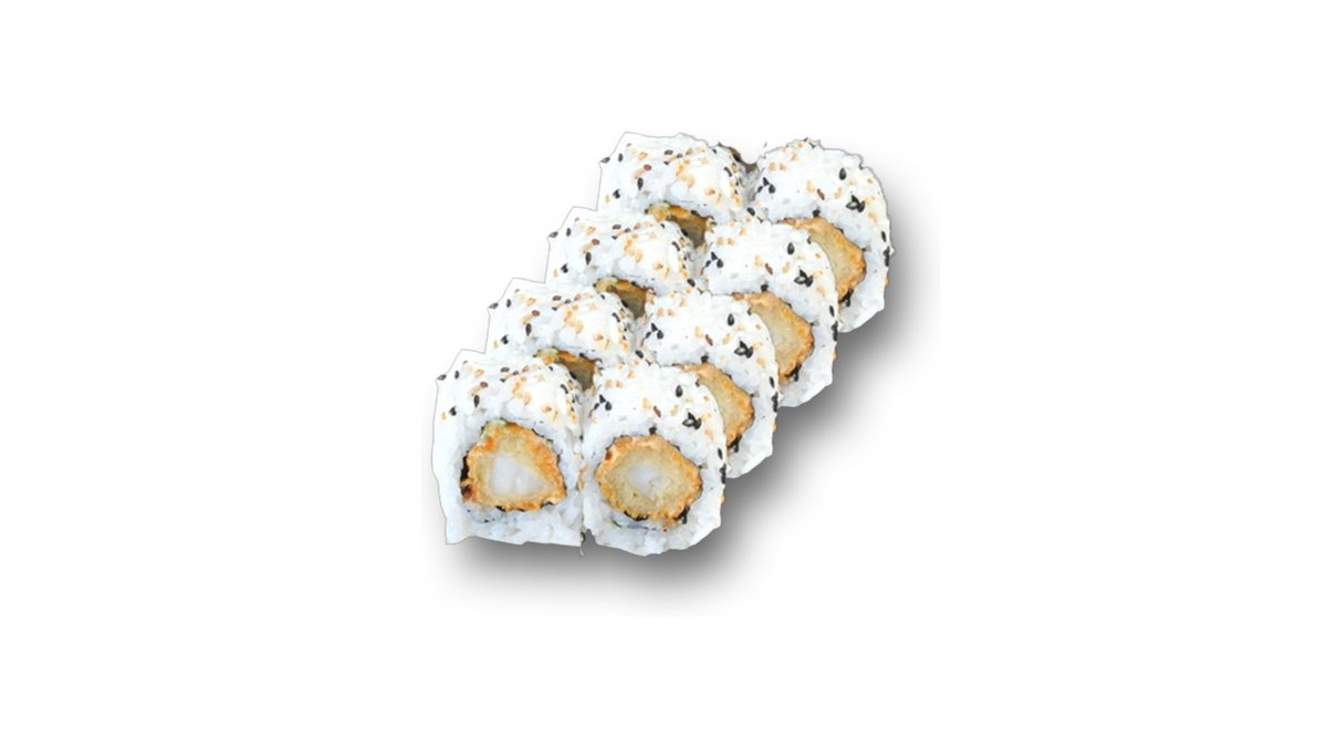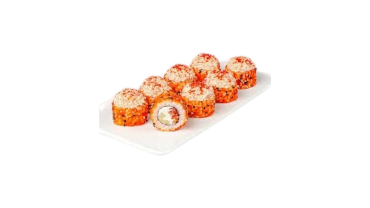 Ψημμένο maki με σουρίμι καβουριού, καλυμμένο με σάλτσα αρωματισμένης κρέμας τυριού, γαρίδα, sweet chilli και φρέσκο κρεμμύδι