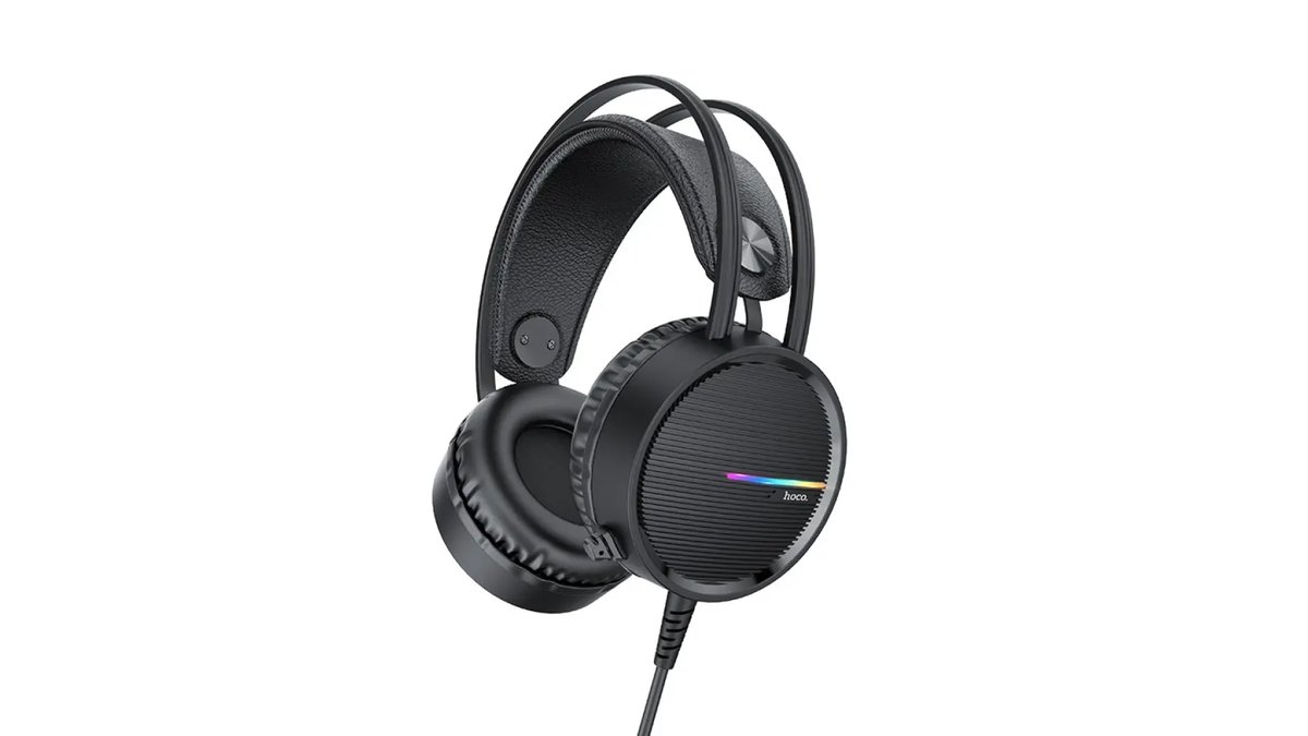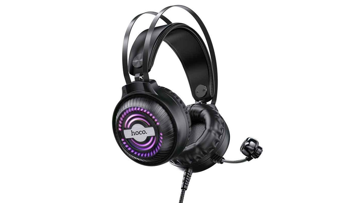 Ακουστικά Stereo Gaming Hoco W100 Touring 3. 5Mm Με Μικρόφωνο, Ρύθμιση Έντασης Ήχου Και Led Φωτισμό Μαύρα