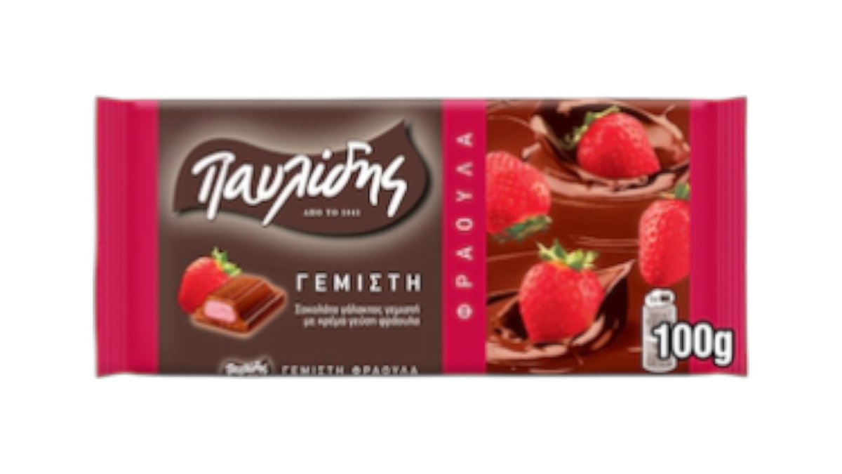 Παυλίδης Σοκολάτα Γάλακτος Γεμιστή με Φράουλα 100 g