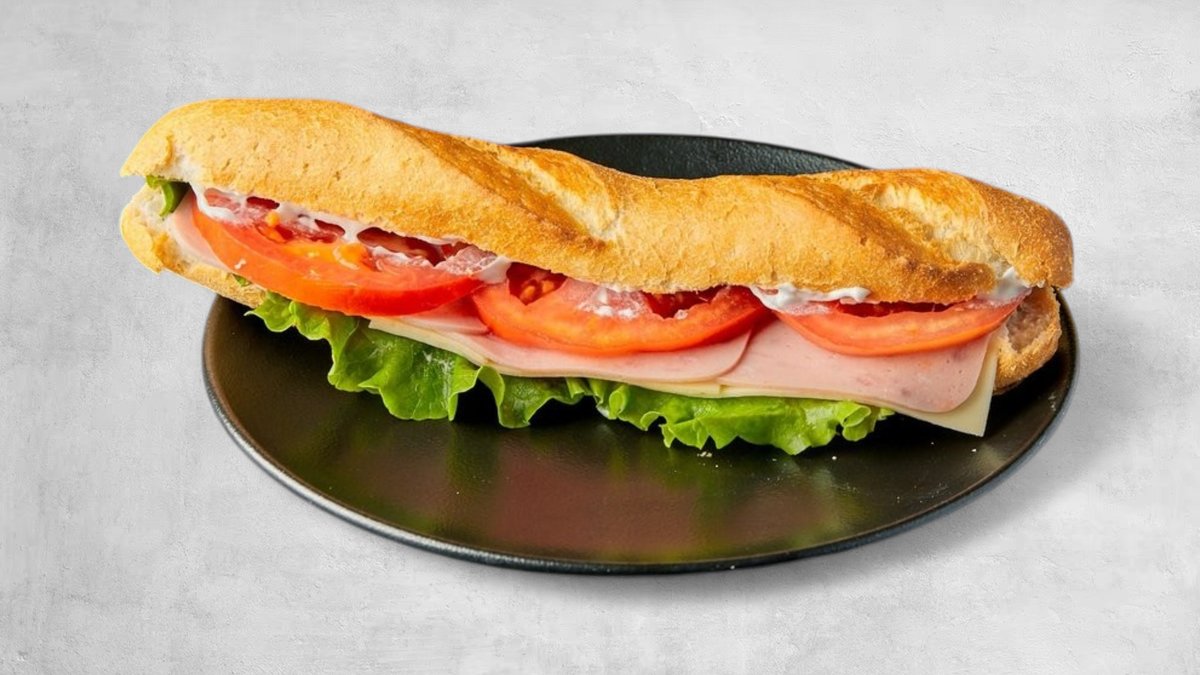 Με ζαμπόν, gouda, ντομάτα, μαρούλι και μαγιονέζα