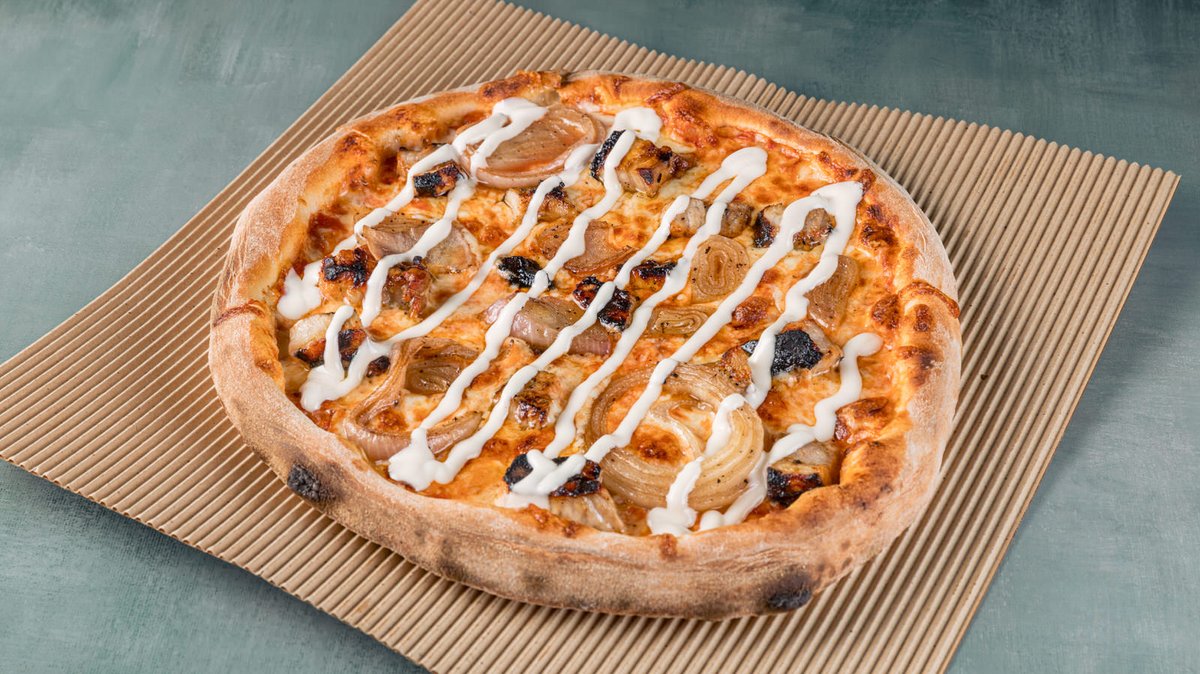 Με χειροποίητη σάλτσα ντομάτας, μοτσαρέλα, μπέικον, παρμεζάνα, ντομάτα και bacon mayo