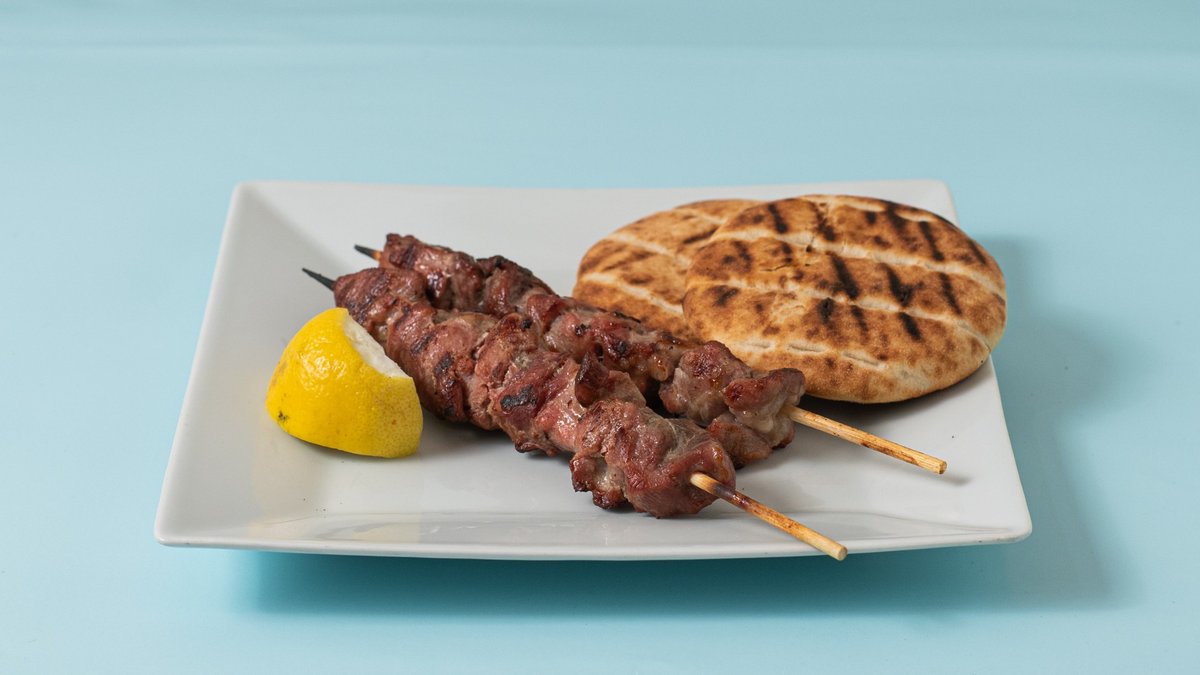Με κοντοσούβλι κοτόπουλο, κασέρι, πιπεριά, ντομάτα, ketchup, μουστάρδα, παρμεζάνα, τζατζίκι ή τα υλικά τις επιλογής σου Συνοδεύεται από πατάτες τηγανητές