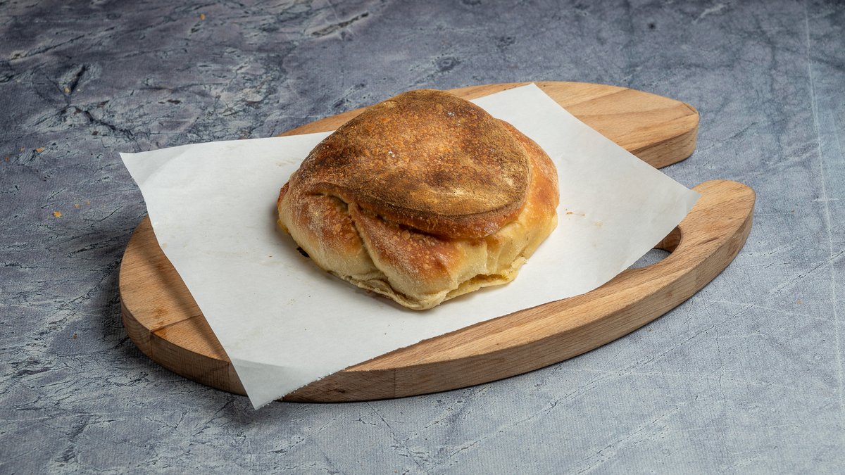 Με ομελέτα, λουκάνικο χωριάτικο, τυρί, ντομάτα, πιπεριά, τυροκαυτερή, ρίγανη και μουστάρδα
