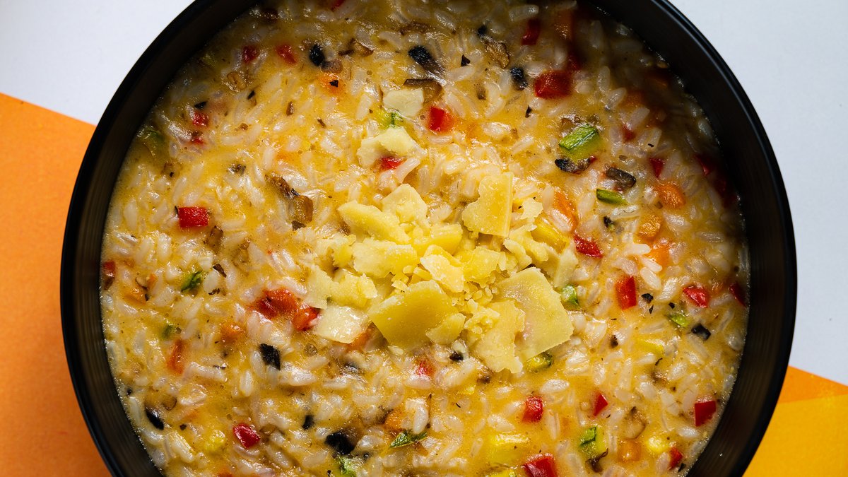 Με κοτόπουλο, μπέικον, κόκκινη πιπεριά, μανιτάρια, κρέμα γάλακτος και παρμεζάνα