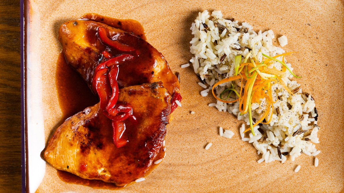 Με ντομάτα ψητή, μοτσαρέλα και sauce μουστάρδας με σιναπόσπορο. Συνοδεύεται από πατάτες country και σαλάτα με πράσινη λόλα, κόκκινη λόλα, baby ρόκα, baby σπανάκι και dressing βαλσάμικου