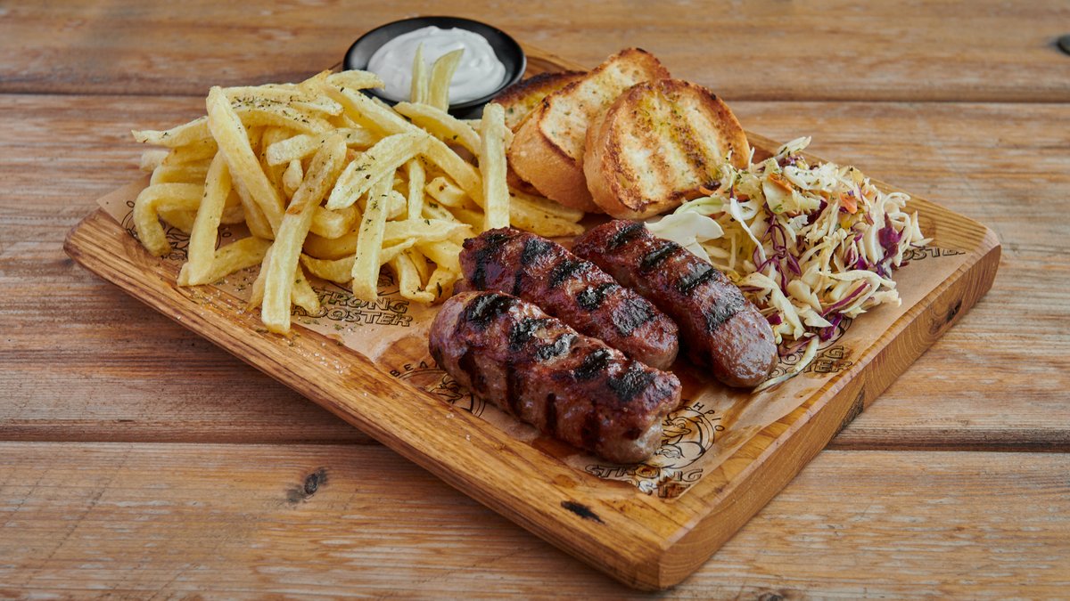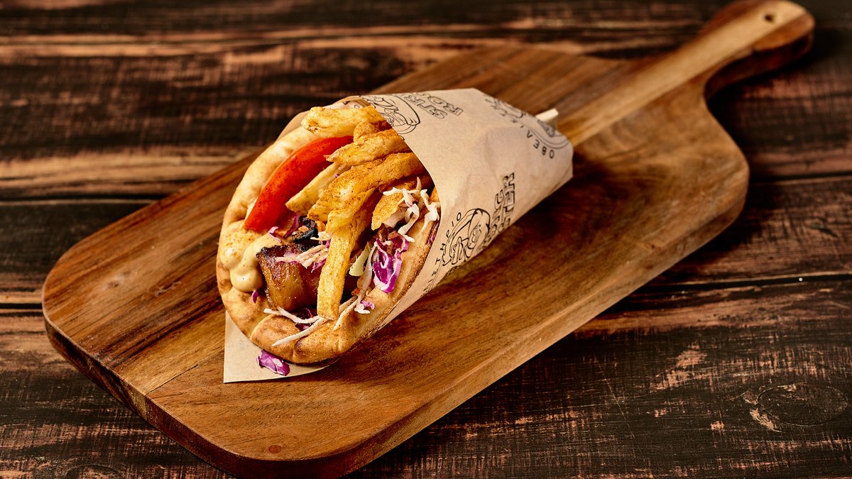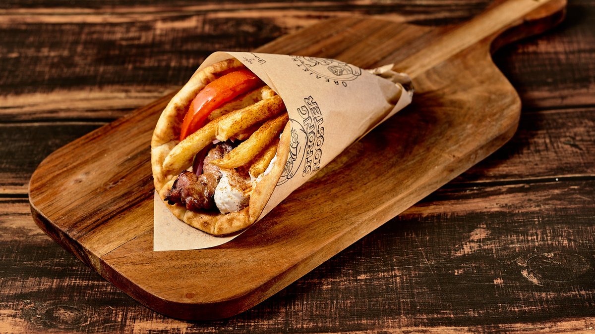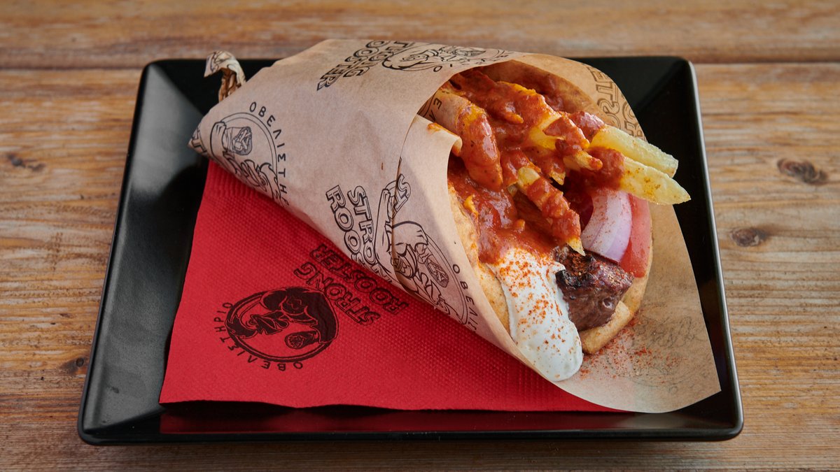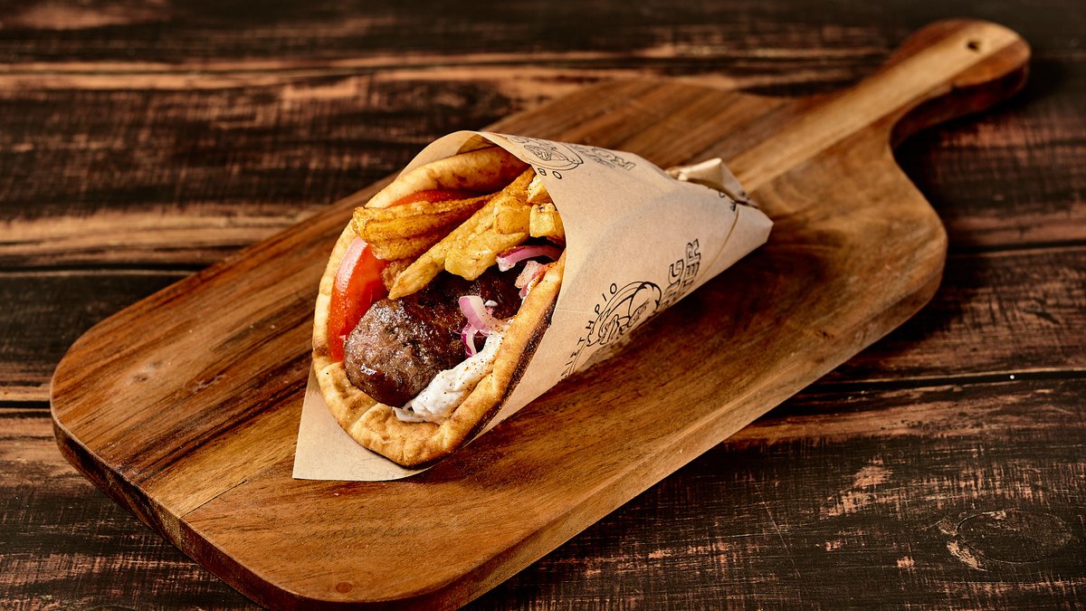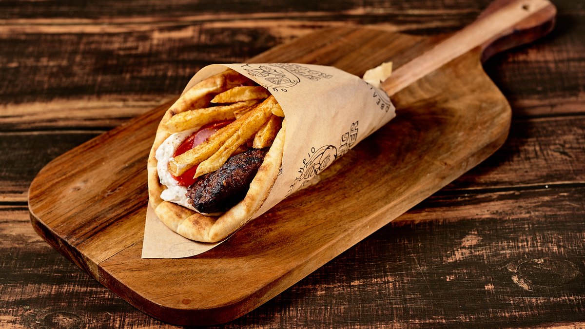 Συνοδεύεται με πατάτες, σαλάτα λάχανο καρότο, ψωμί και sauce γιαουρτιού