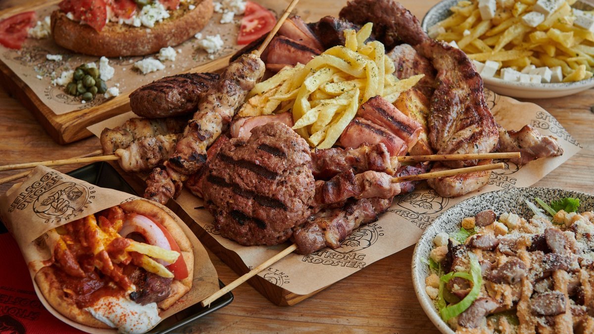Στο 'Strong Rooster' θα βρεις λαχταριστές επιλογές από σουβλάκι, κοντοσούβλι, μερίδες, ποικιλίες, κρεατικά σούβλας και σαλάτες που θα λατρέψεις!