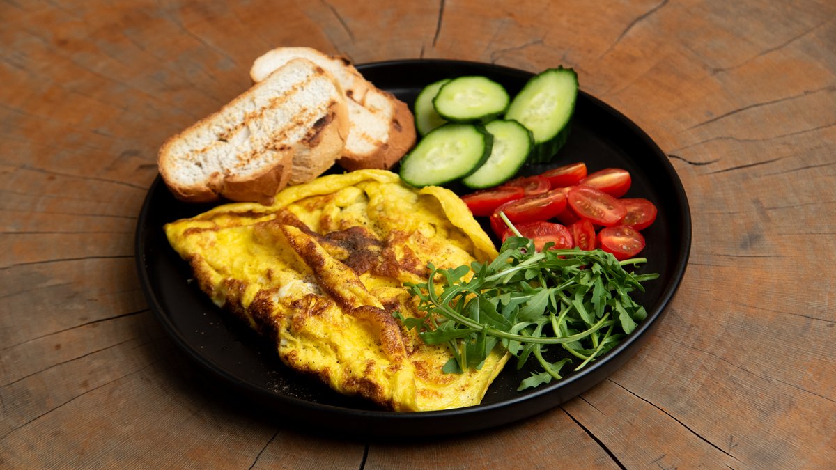 Ομελέτα με ρόκα και ψωμί φρυγανισμένο, καφές της επιλογής σου και νερό 0.5 l