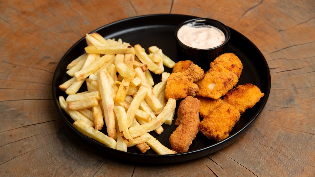 Κοτομπουκιές με πατάτες και το αναψυκτικό της επιλογής σου
