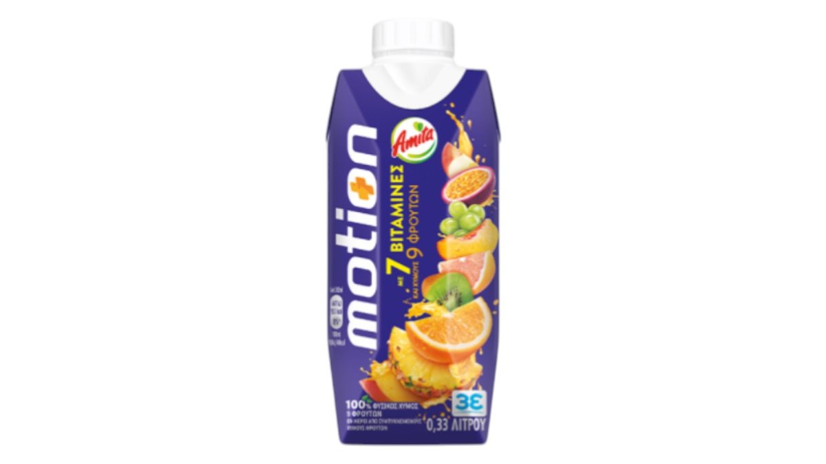 100% φυσικός χυμός Amita Motion με 9 φρούτα και 7 βιταμίνες