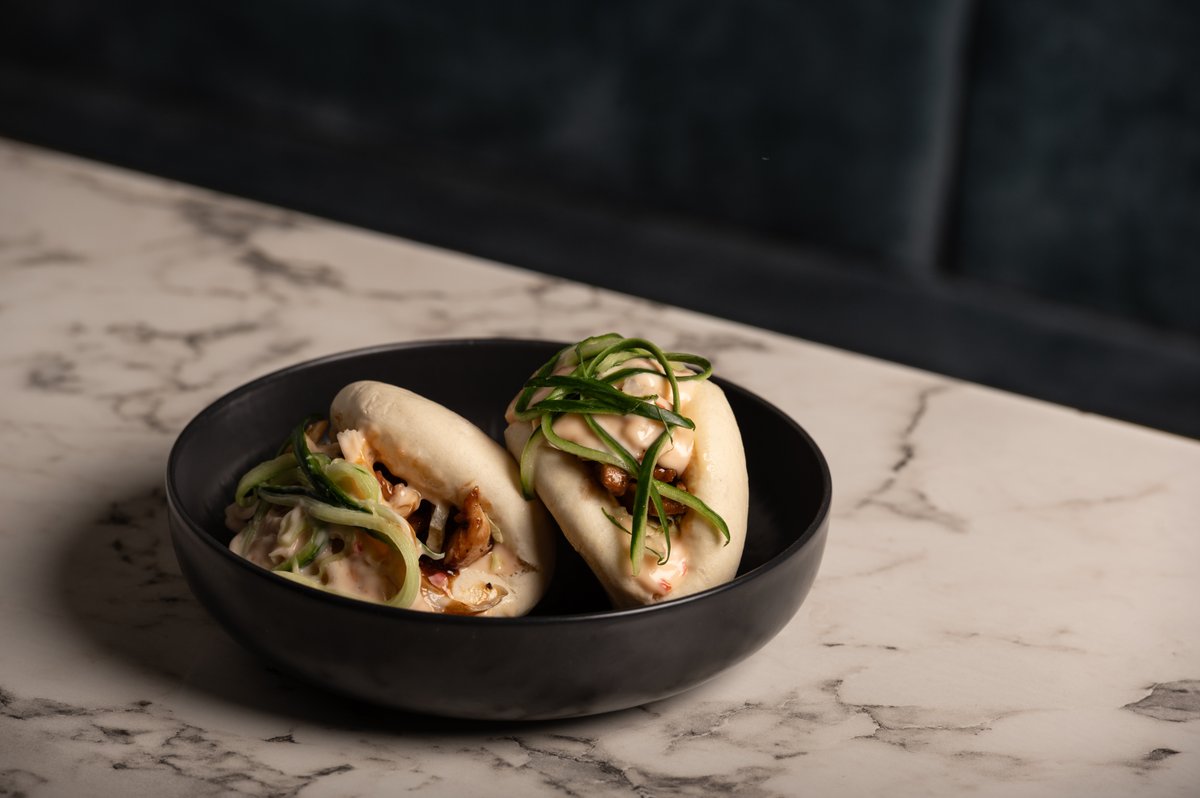 Aφράτο bao bun με φιλέτο κοτόπουλο με σάλτσα teriyaki, πίκλα, λάχανο και sweet chili mayo