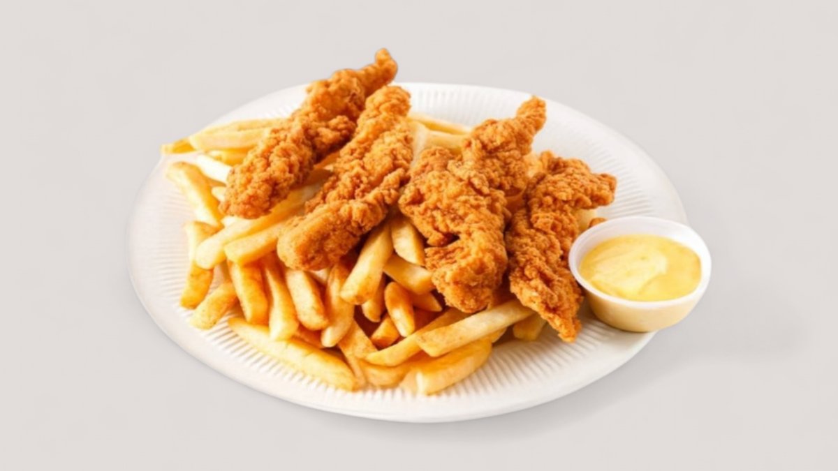 4 τραγανές μπουκιές φιλέτο κοτόπουλου & 2 τραγανά φιλέτα στήθος κοτόπουλου (Strips Fingers)