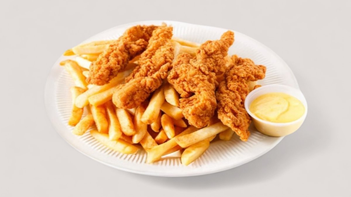 4 τραγανές μπουκιές φιλέτο κοτόπουλου & 2 τραγανά πικάντικα φιλέτα στήθος κοτόπουλου (Strips Fingers)