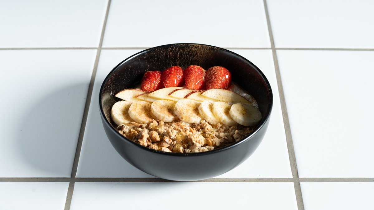 Γιαούρτι με φρούτα εποχής, γκρανόλα, μέλι και κανέλα