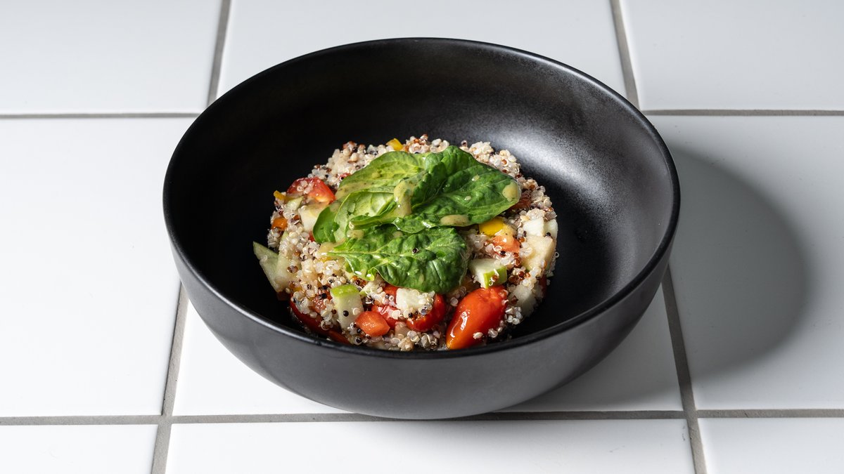 Με πράσινο μήλο, κινόα, πολύχρωμες πιπεριές, baby σπανάκι και βινεγκρέτ δενδρολίβανο