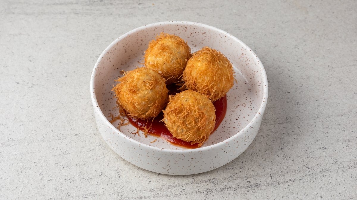 Κροκέτα τυριών με κανταΐφι και μαρμελάδα ντομάτας