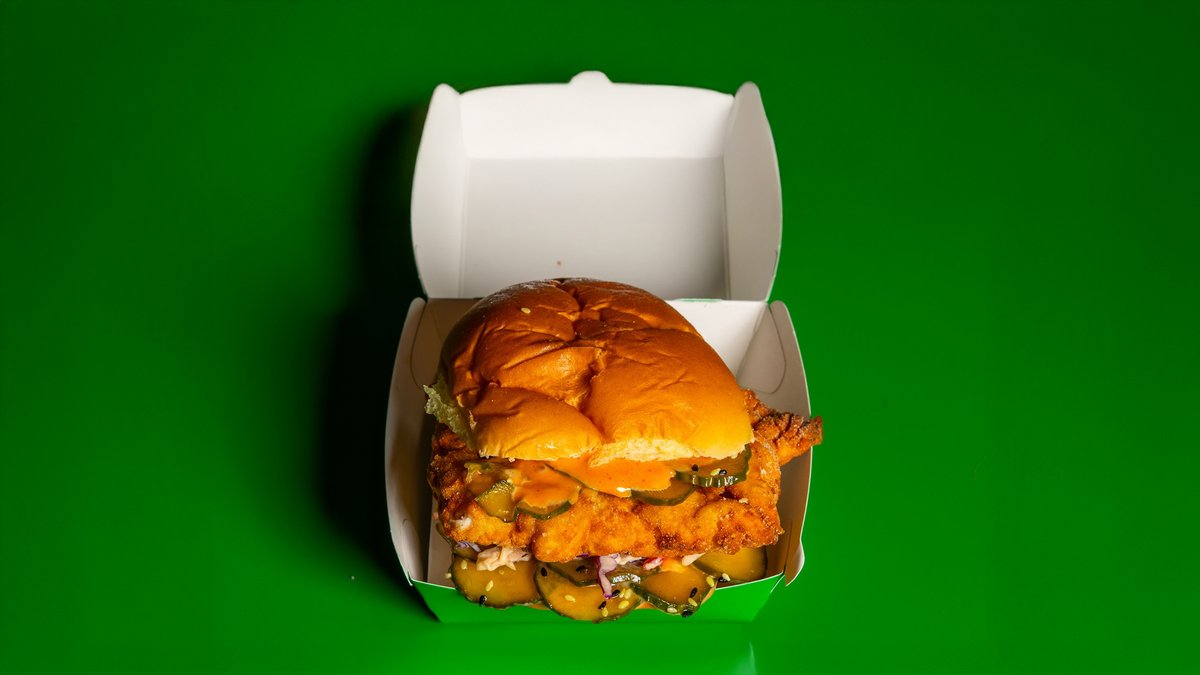 Με τραγανό παναρισμένο φιλέτο κοτόπουλο, asian style πίκλες, coleslaw και gochujang mayo