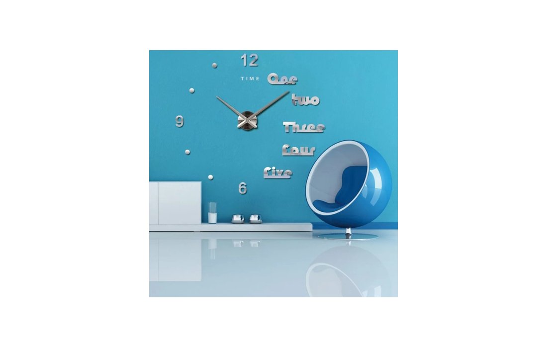 Αυτοκόλλητο Ρολόι Τοίχου Πλαστικό 3D DIY Γυαλιστερό με Νούμερα - Μεγάλο - 5627 - Γράμματα Τελείες Αριθμοί - Ασημί