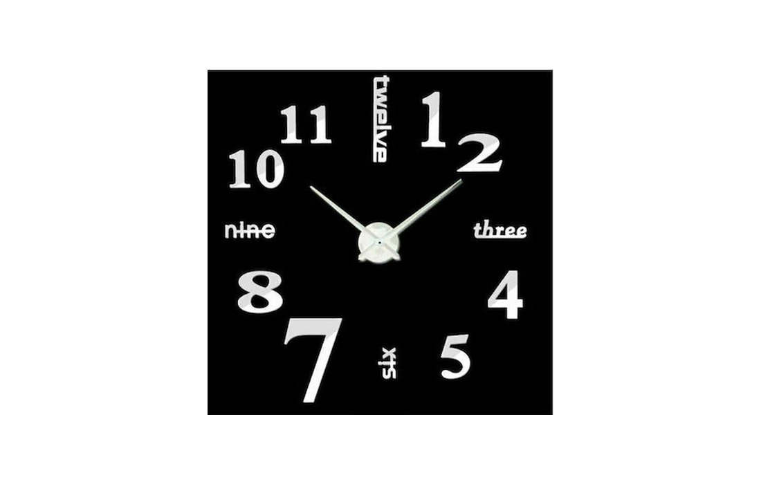 Αυτοκόλλητο Ρολόι Τοίχου Πλαστικό 3D DIY Γυαλιστερό με Νούμερα - Μεγάλο - 5314 - Γράμματα Γραμμές - Μαύρο